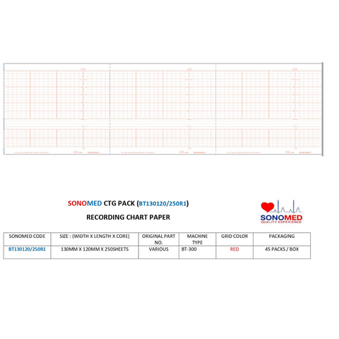 Papel para tococardiógrafo marca sonomed modelo BT130120/250R1
